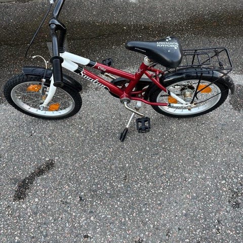 Jättefin barncykel som nyligen är helt genomgången med däck, kedja, handbroms mm. Stadig cykel.