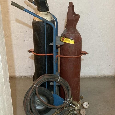 Gassvets med fulla friköpta 5literstuber från Aga/Linde. Komplett med Regulatorer, backslagsventiler, ny tvillingslang med backventiler, X-11 handtag, tre svetsmunstycken och en skärtillsats. Står på en smidig rejäl kärra. Mycket fint skick på allt! Mailsvar med telenr så ringer jag upp. Skickas ej och säljs privat. Obs att priset är fast-sista priset kompis undanbedes.