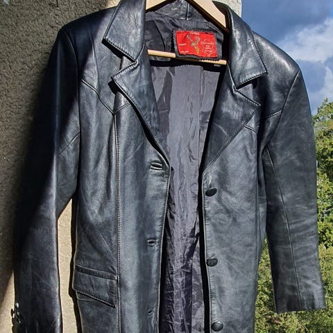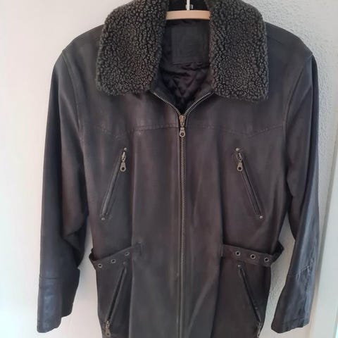 Skinnjacka i fint skick, använd ca 5-10 ggr. Kortare modell i storlek 40. Fickor utanpå samt en inuti. Svart med dekorativa dragkedjor i silver. Mjukt följsamt skinn, inga defekter.