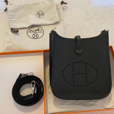 Säljer ett oanvänt Hermès 32 mm Reversible H-bälte i klassiskt utförande med svart Box Calf på utsidan och Etoupe Togo på insidan. Bältet har spegelliknande palladium H-buckle och kommer komplett med original orange Hermès-ask och tygpåsar för både bälte och spänne.