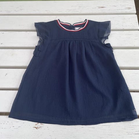 Ljusblå klänning från Tommy Hilfiger med en liten logga på bröstet. Klänningen har en rund halsringning och en rynkad kjol.