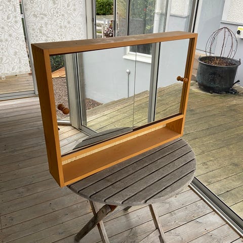 Skåpet är aldrig monterat – allt ligger kvar i originalförpackning med instruktioner.