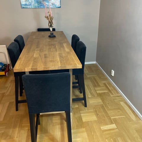 Säljer mitt IKEA HÅVERUD barbord (utgått från IKEAS sortiment) inklusive 4st stolar. Du får även tillbehören (2st krokar, kryddhållare, hållare för hushållspapper)