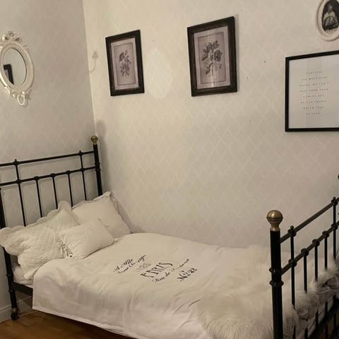 IKEA Noresund sängram i metall med ribbotten.