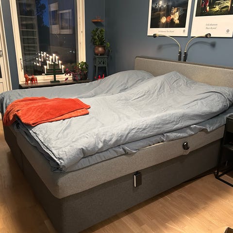 En otroligt bekväm och lyxig säng med motoriserad höj- och sänkfunktion på båda sidor – perfekt för att läsa, titta på TV eller bara hitta den perfekta sovställningen.