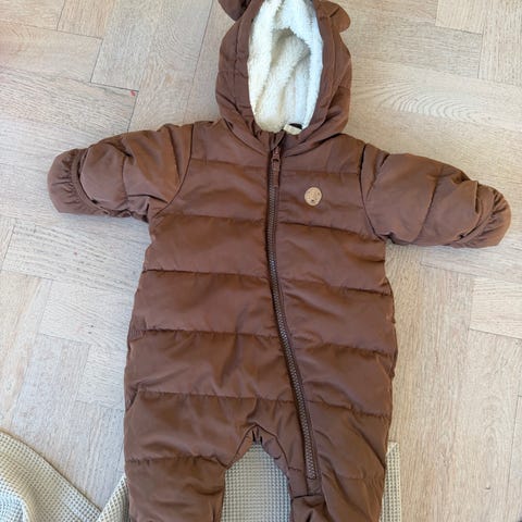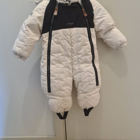 Vinteroverall i mycket fint skick. Storlek 74. Mjukt foder och reglerbara arm- och fotslut där man kan vika över för extra värme.
