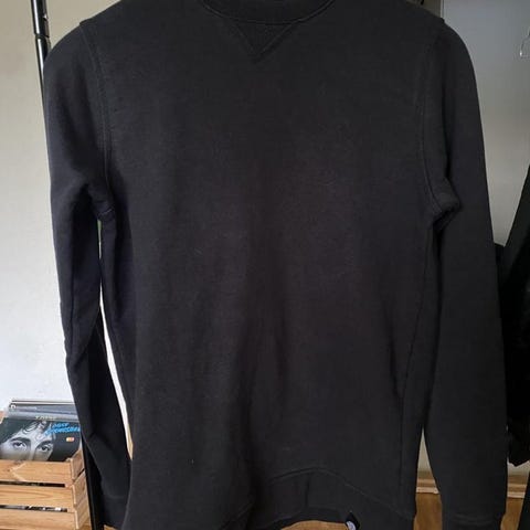 Använd, trycket är lite slitet och tröjan har blivit lite blekt i övrigt är tröjan hel.