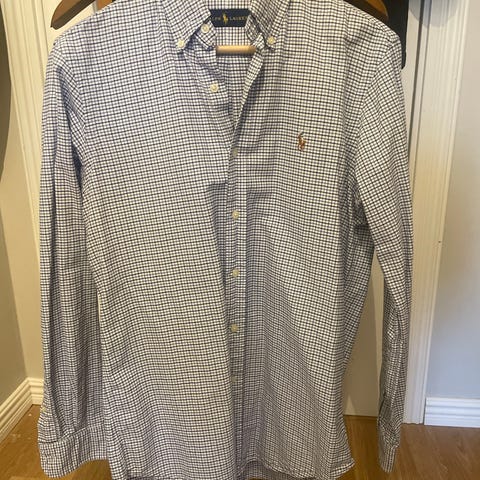 Ralph Lauren blå och vit rutig kortärmad skjorta L