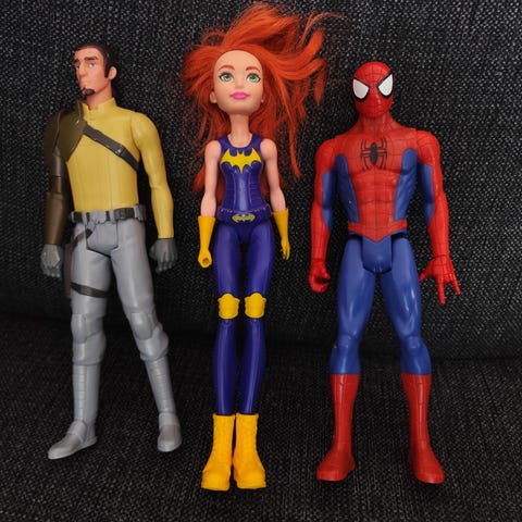 Vi har ärvt ett stor samling m Action man. Massor av tillbehör - allt från klocka, solglasögon och mobiltelefon, till hjälmar, snöskor och krycka m tillhörande bandage. En den kläder (bl a dykardräkt). Lite olika skick. Vissa mycket bra, andra mer använt. De vita kläderna behöver tvättas. Där är även någon form av kort enligt bild. . Även en båt och en hund enligt bild. 5 stora dockor och en liten i ”helplast”.