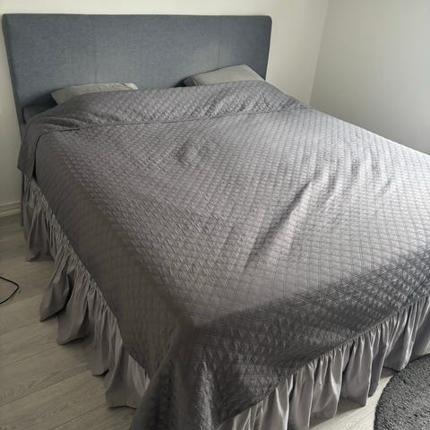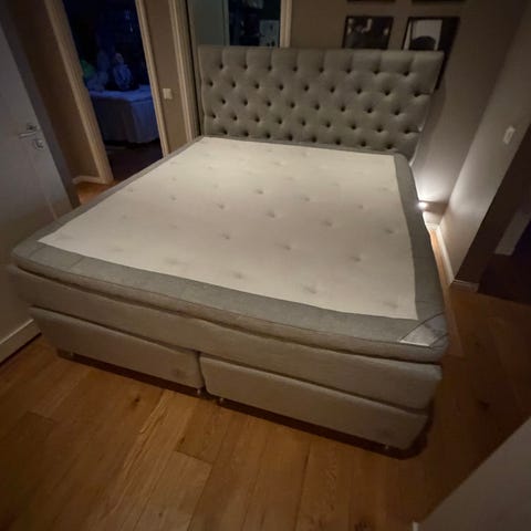 Superfin säng som är i jättebra skick! Sammetstyg i färgen sand.