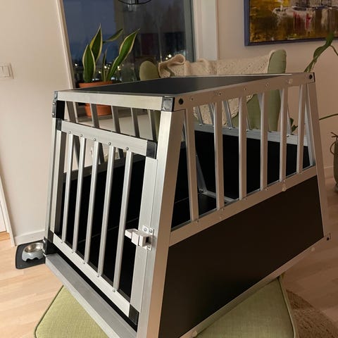 Hundbur till en mindre hund (har används i baksätet på bilen). Längd 60 cm