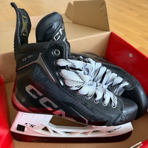 CCM XF Tacks intermediate skridskor strl 5,5 (39) Trapeed fit. Det ingår även ett par frottéskydd till skridskorna, ett par skridskoskydd och ett par extra vaxade skridskosnöre.