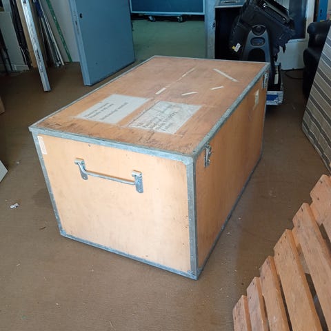Mycket robust trälåda, transportlåda eller förvaringslåda.