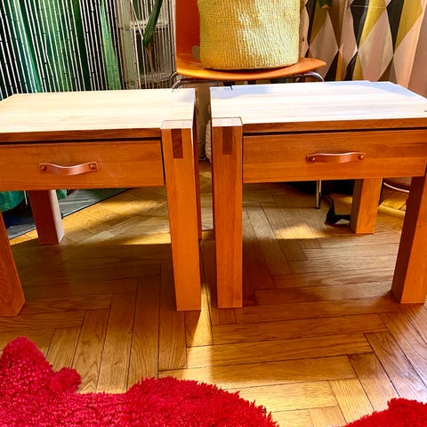 Pall, sidobord, sängbord ”Cacocum” säljes. Handgjord trämöbel av svartmålat mangoträ.