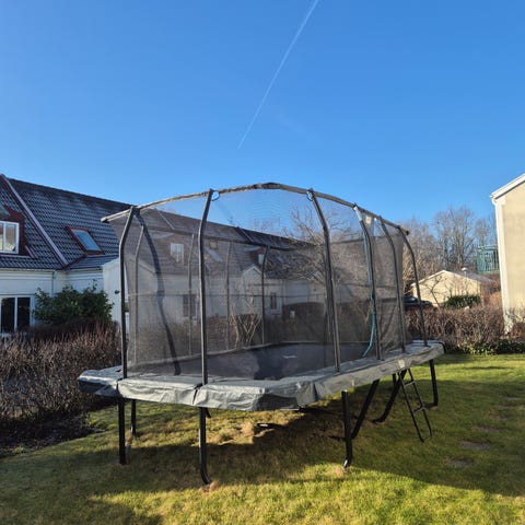 Vi säljer vår North Trampoline (oval modell, 3417 x 4950 mm) från 2018.