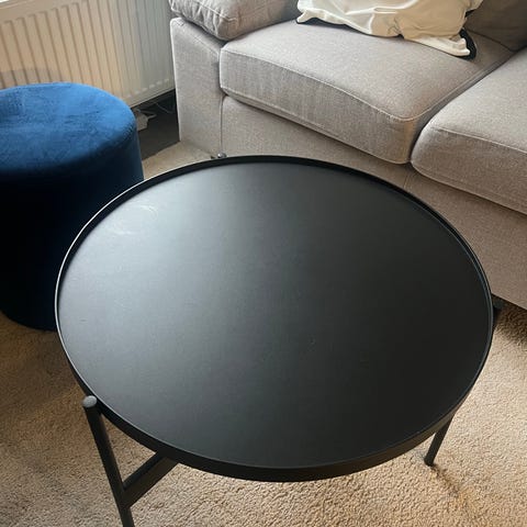 Oval, svart soffbord köpt 2020. Bordet är helt och inga repor.