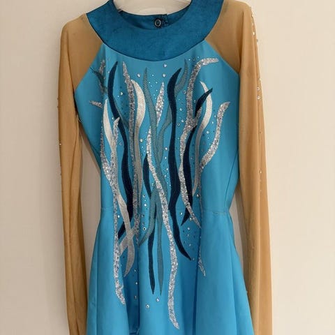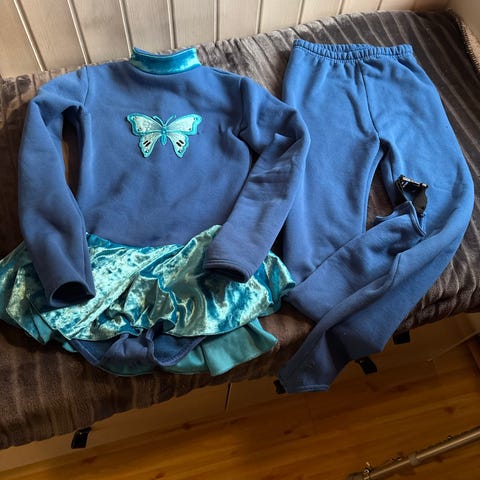 Dräkten är ganska liten i storleken, ca 54 cm i ryggen (mätt från övre delen av ”kragen” till grenen). Se även https://www.dansbutiken.com/shop/dansklader/barn/drakter-flickor/gymnastikdrakt-black/