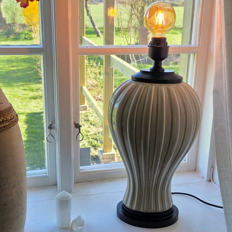 Stor vacker bord/fönster lampa från Oriva i svart smide (utgått modell)