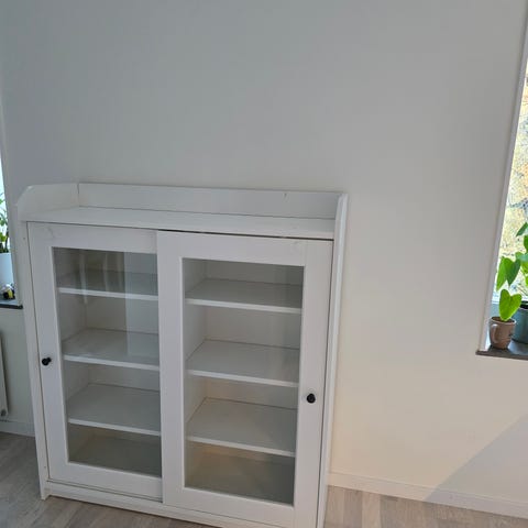 Vitrinskåp i vitt trä. Något år på nacken bara så den är i gott skick.