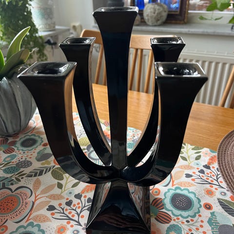 Tillverkad av Smålandsslöjd, Värnamo, design Stig Johnsson. Ljushållare i metall, innermått 5 cm, för gille- eller antikljus.