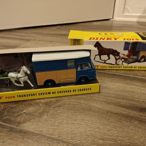 Säljer nu mina Dinky Toys bilar, tre av dom i originalkartong. Den röda bärgaren är en Citroën, den blå lastbilen är en Austin