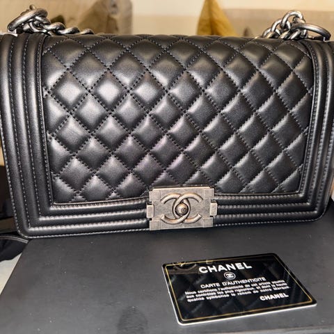 Säljer min Chanel väska inköpt i USA för ett antal år sedan. Dock aldrig använd så väskan är precis som ny. Vid intresse kan mått skickas. Kulören är mörk blå. Kvitto saknas men det går att ringa Chanel i Beverly Hills för verifiering av inköp.