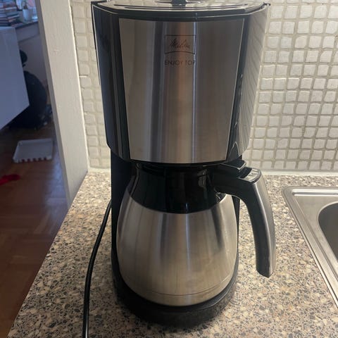 Termoskannan är på 10 liter och har varmhållning och kan såklart användas med vanlig kaffebryggare eller för andra drycker.