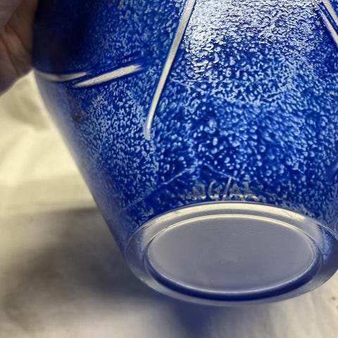 stor glasskål av MATS JONASSON/ Målerås Glasbruk, monogramsignerad.