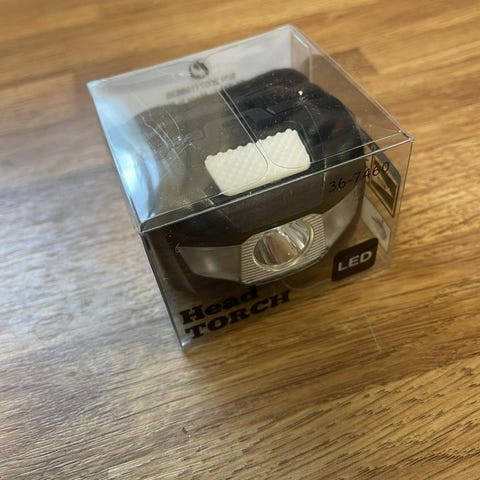 Lätt pannlampa. se bild 3 så har en tejp för att hålla fast. Fungerar i övrigt som den ska