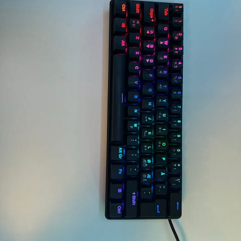 Tangentbordet fungerar fint förutom att Windows Knappen inte fungerar samt så är SPACE tangenten lite trög. Tangentbordet är inte trådlös.