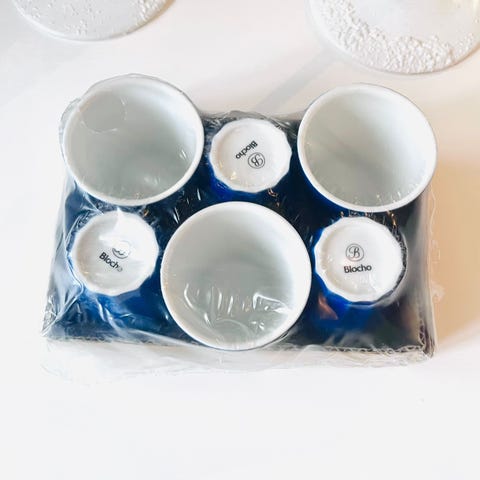 Askkopp, blåvit keramik. Diameter ca 10 cm. Höjd ca 4 cm.