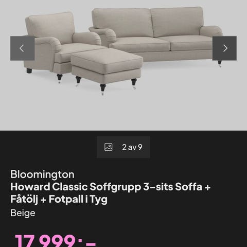 två stycken Howard soffa 3-sits Beige 6 månad gammal