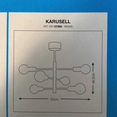 Smidig taklampa i mässing/guld-färg med 3 justerbara spotlights. Bra ljus, takkontakt ingår.