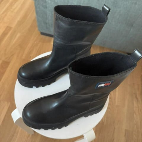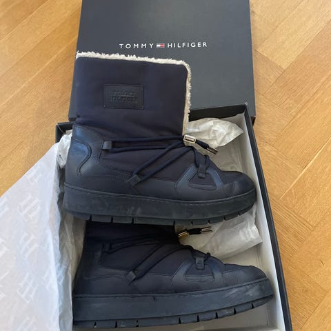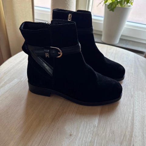Mörkblåa mocka boots med klack i strl 41 från Tommy Hilfiger.