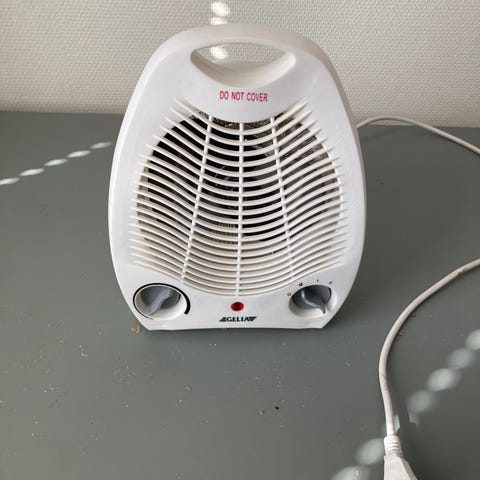 Värmefläkt med sensor på undersidan. Stänger sv när den lyfts upp.