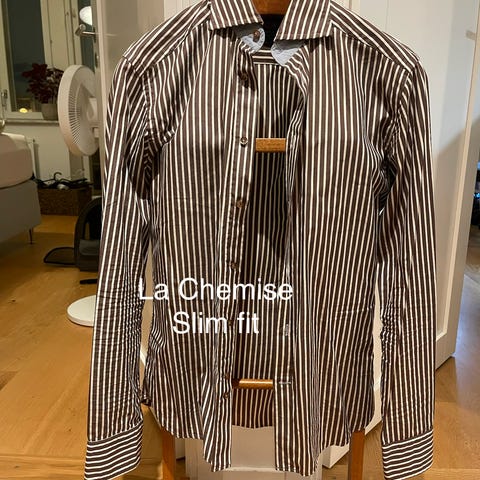 Marinblå mönstrad skjorta från Bruun & Stengade i strl 38.