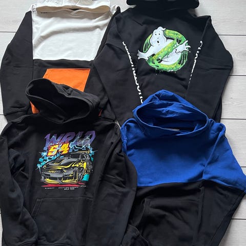 4 fina hoodies som har ungefär samma storlekar, alla passar nog dock om man bär något runt de storlekarna som nämns, skriv till mig om du vill ha en bild på baksidan av dom! Kan säljas separat!