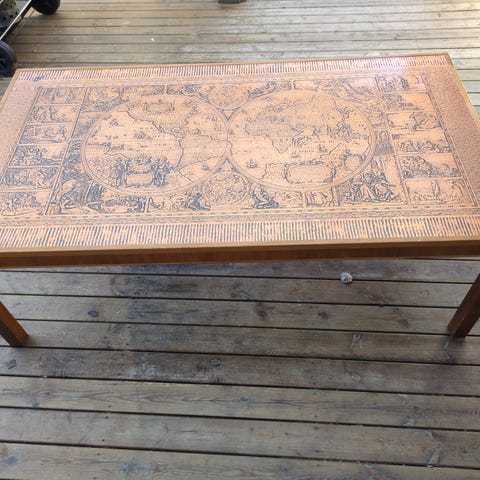Ett äldre bord som har använts som vardagsrumsbord. Mindre skavanker finns annars ett robust och stadigt bord.