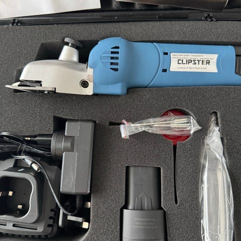 Klippmaskin tillverkare Alfa Laval i mycket bra skick. Fler skär medföljer men samtliga behöver slipas för bästa funktion. Endast sparsamt använd. En riktigt bra kvalitetsmaskin.