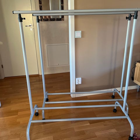 Klädställning med låsbara hjul, bottenplatta samt justerbar höjd. Rejäl och stabil konstruktion. (Går ej att demontera)