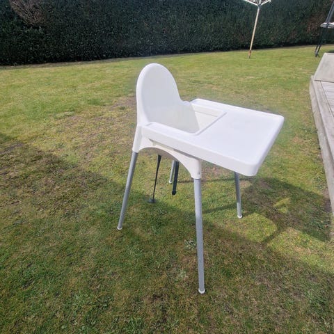 Stolen är i bra skick, den går att ha i detta utförande, men finns ben som man sätter dit så den kommer upp i höjd med matbordet.