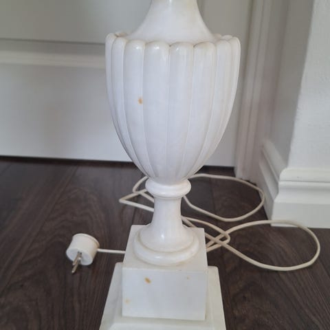 Elegant bordslampa med klassisk design. Fot i porslin med handmålat motiv i varma färger och kupolformad lampskärm i satin med dekorativ frans och guldfärgad kant. Ger ett stilfullt och mjukt ljus – perfekt för vardagsrum eller sovrum.