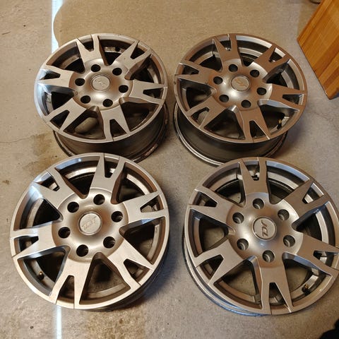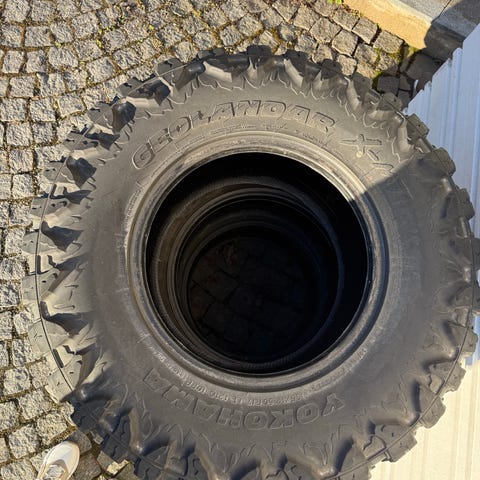 En uppsättning terräng däck 2 st slitna och 2 st med hyfsat mönster kvar. De två slitna klarar ej att gå genom besiktningen. Kan vara ett alternativ till någon som endast skall använda dom i terräng eller köpa till 2nya om man måste kunna köra på väg.
