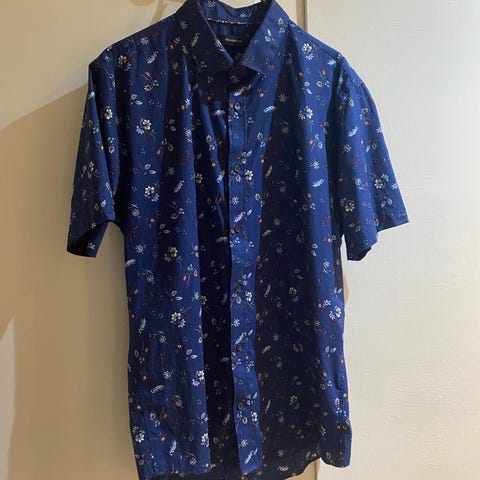 Ljusblå Matinique skjorta MAtrostol stl S i väldigt fint skick. Bruna knappar, blommigt mönster på manschetter. 100% bomull Kommer ifrån rök och djurfritt hem.