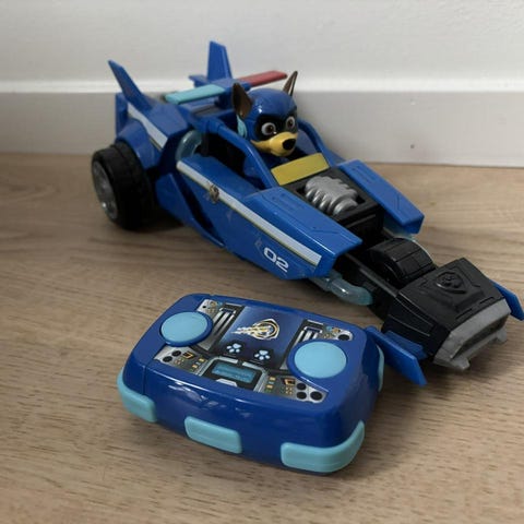 Paw Patrol fjärrstyrd mc med Chase. Fordonet är ca 28 cm långt och 17 cm högt.