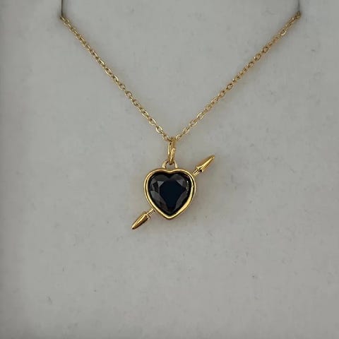 Grönt hjärta med pil. Kedja 50 cm, justerbar. Hängets diameter 0,9 cm. Rostfri