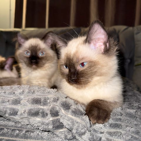 Mamma är 100% Ragdoll och pappa är 100% Ragdoll. De är väldigt sällskapliga, nyfikna och älskar att leka, gosa och umgås med både barn och vuxna. De har vuxit upp i en trygg hemmiljö, vilket innebär att de är vana vid vardagliga ljud, människor och massor av kärlek.
