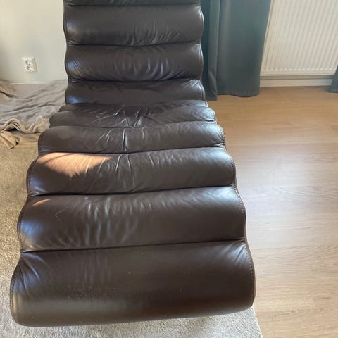 Bruno Mathssons klassiker Pernilla 69 med ljust läder. Läder har några fläckar - se bilder! Få fläckar och väldigt fin stol med härlig patina.