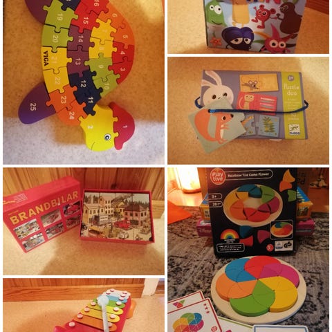 *Skateboard gubbe /skatare och ramp: Pris: 150 kronor *Djurpussel som låter som Djuren när du lägger biten rätt. Hästen gnäggar osv + Bok som lär barnet räkna 1,2,3... 250kr.