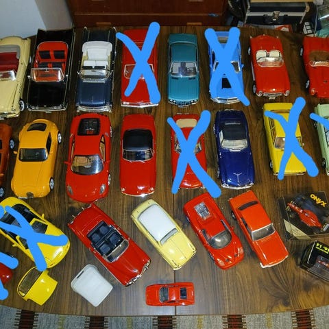 En samling modellbilar 16 stycken av skala 1:18 av olika fabrikat. Bilarna kan säljas separat om en vis midell önskas köpas separat .vid frågor hör av er